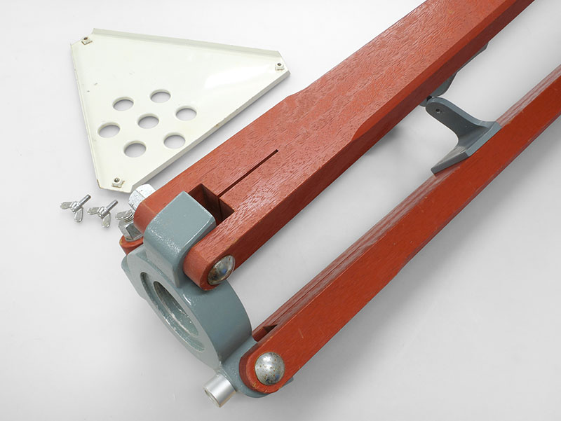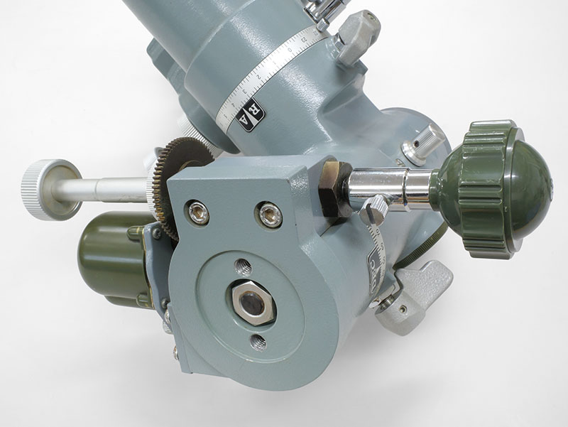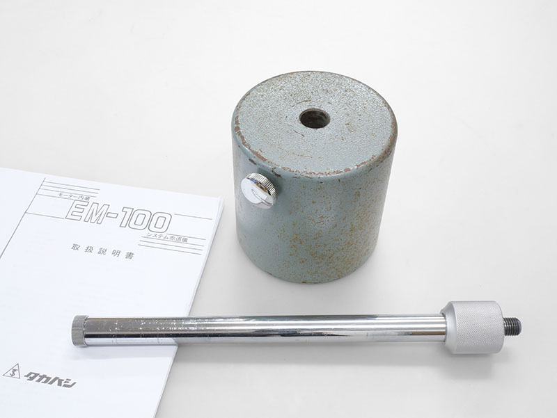 | | 1983年製造と思われるEM-100赤道儀です。年式なりの古さと使用感があります。微動の回転が重めですが、概ねスムーズに動作します。PD6-XYモータードライブ、微動ハンドル2本、7kgバランスウェイト、説明書(コピー)、木製直脚(長さ76cm)が付属します。 |